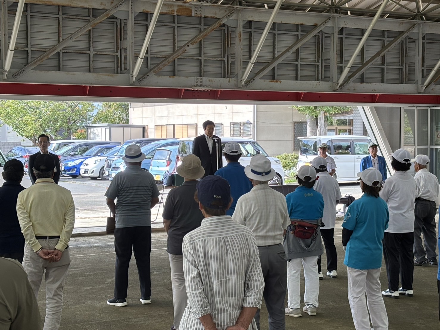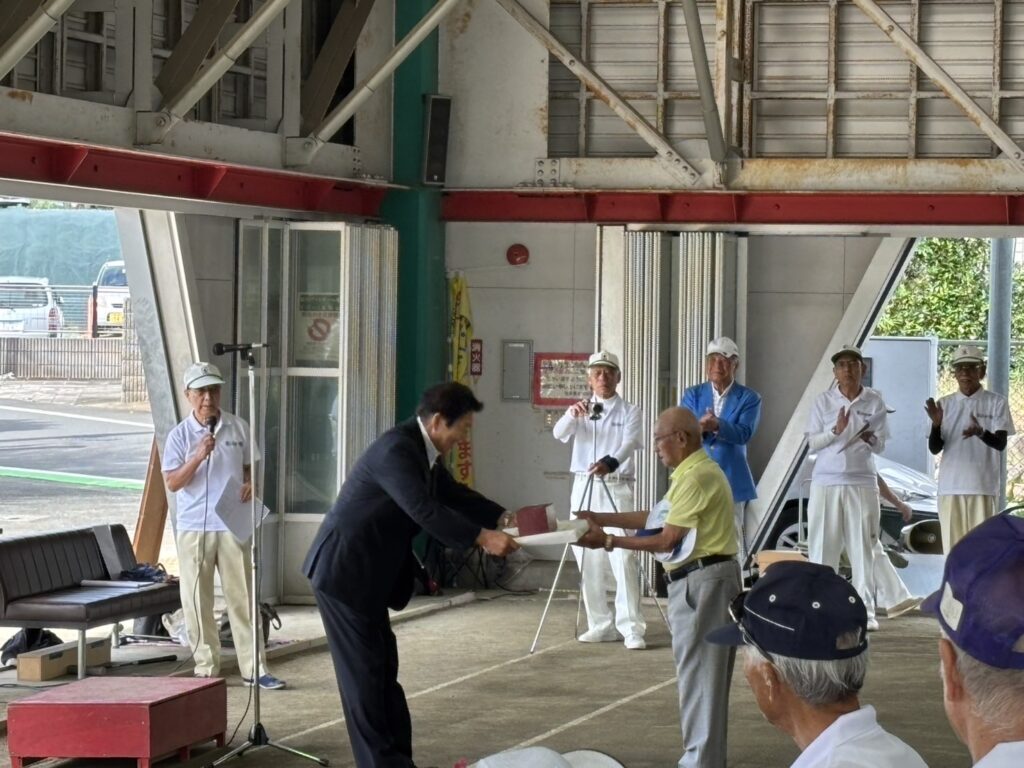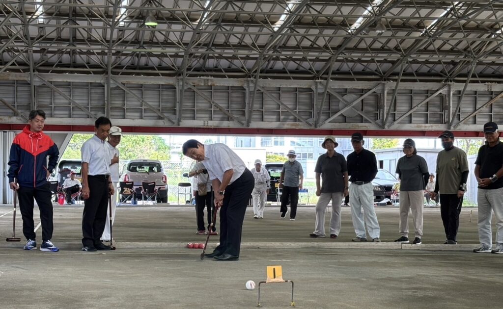 「市民総体ゲートボールの部」がスパーク東松山ゲートボール場において開催され、私は連盟名誉会長としてご挨拶。卒寿を越えお元気にご活躍の選手の方々に健康奨励賞表彰を申し上げました。その後、始球式では第一ゲート通過!今日は運が良い! 活動報告 URLをコピーしました! 箭弓様 スポーツ少年団常任委員会