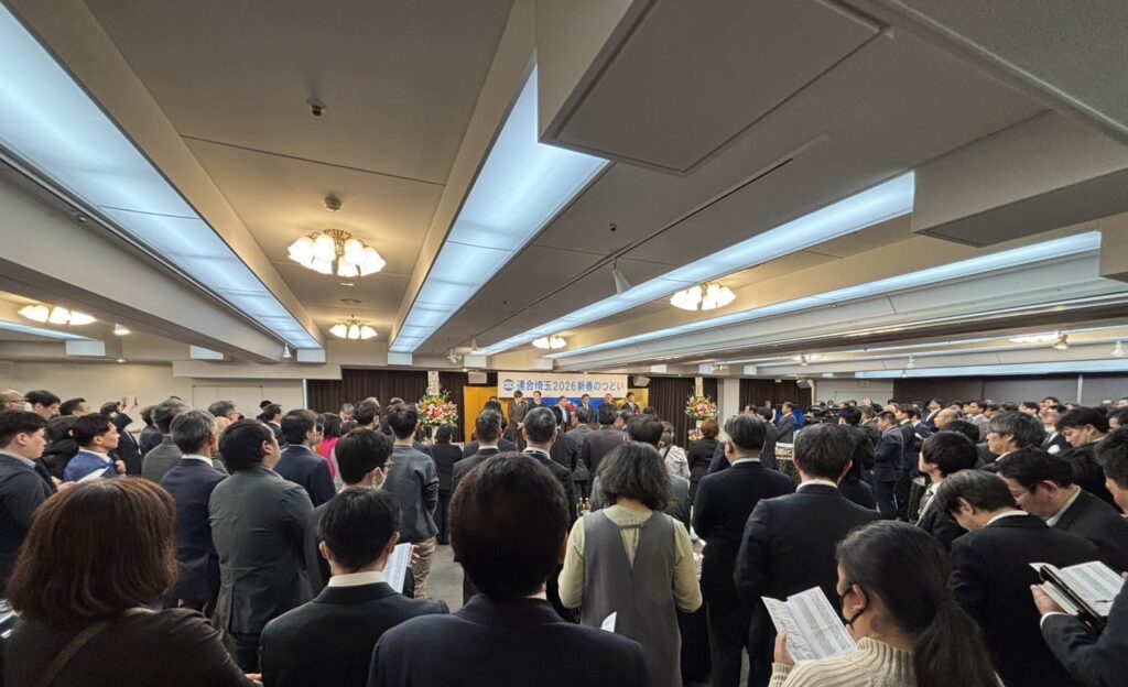 連合埼玉「2026新春の集い」が埼玉勤労者福祉センターにおいて開催され、大野知事、県内首長、衆参国会議員、県議会議員、自治体議員など多くの関係者が一堂に会し盛大に開催されました。今年初めてお会いする方々と有意義な情報交換会を行うことができました。