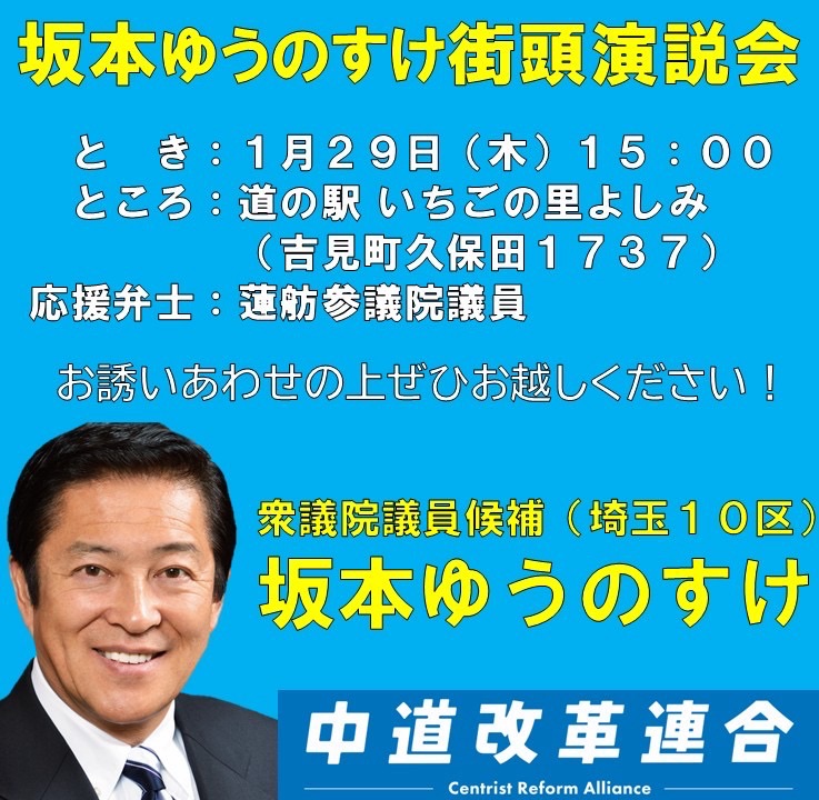 明日は吉見町に蓮舫参議院議員が応援に来ていただきます!