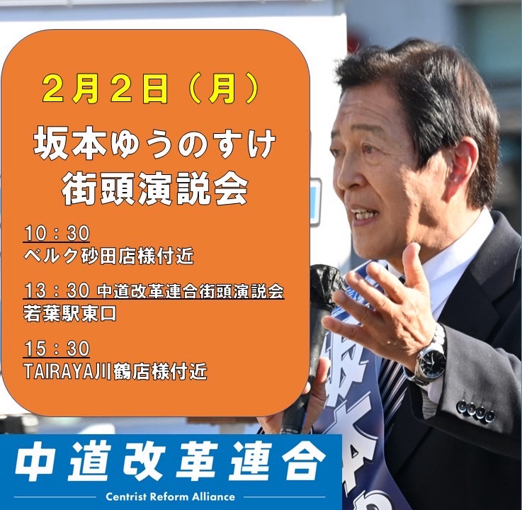 今日も朝からまちかどに立って街頭演説。そして夕方、中道改革連合の街頭演説会が開催され、竹谷とし子公明党代表と石井啓一候補と共にお訴えをさせていただきました。大勢の方々が寒い中、お越しをいただき心から感謝申し上げます。引き続き全力で頑張ってまいります!