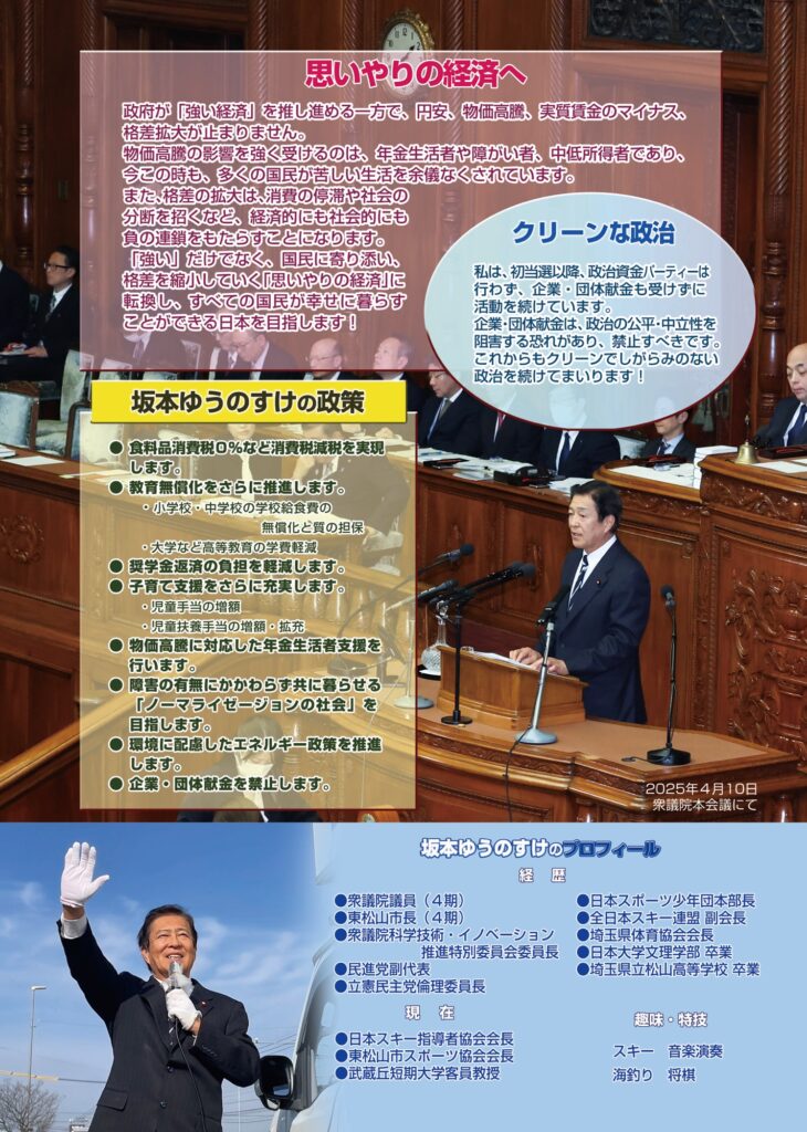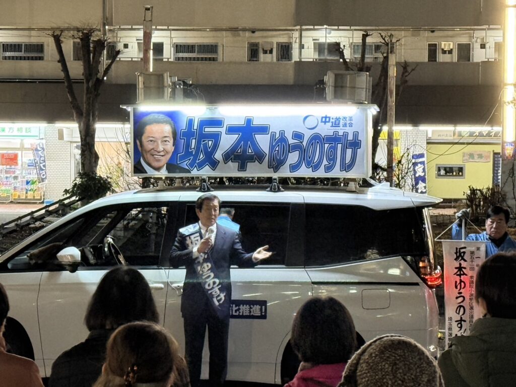 朝から夜までマイクを握りしめて遊説活動。私は初当選以来企業献金・団体献金は受け取らず、資金パーティーも開いたことはありません。クリーンな活動を行うことによってこそ、クリーンで公平・公正な政治を実現することができると考えています!