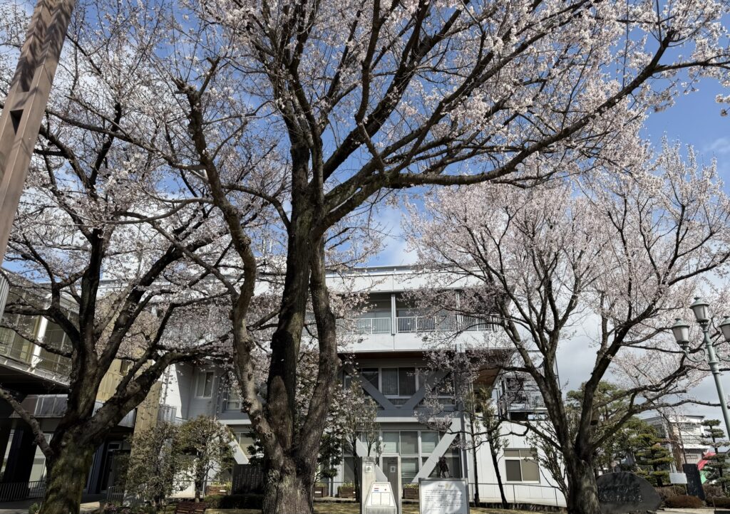 東松山市長在職中の平成9年11月2日、市役所前庭に「きんさん・ぎんさん」と一緒に植えた根尾村の淡墨桜も花が咲いて。あれから29年。歳月の経つのはなんと早いことでしょうか…。