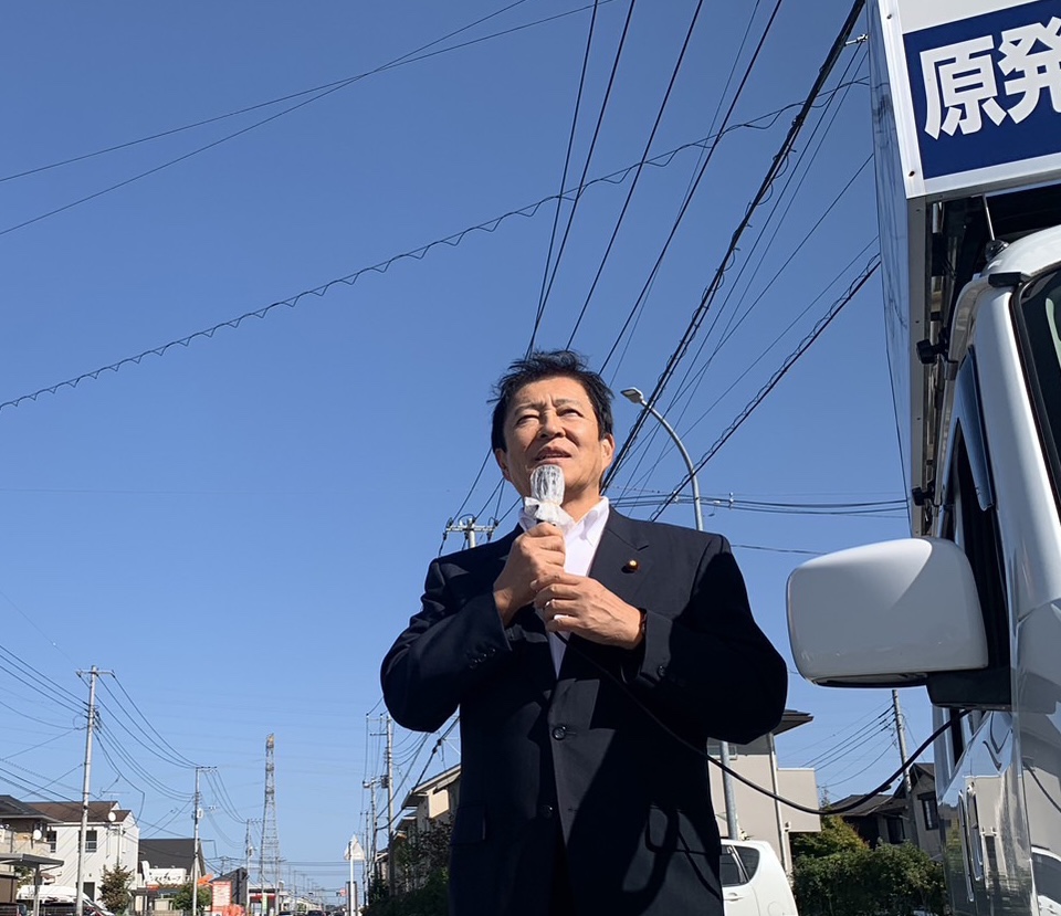 今日は終日「焼き芋屋さん」遊説。さわやかな秋晴れの一日、お昼休みを除いても6時間ほどマイクを持ち続けてお話しを。目と目が合ってご挨拶、そして手を振って励まし...